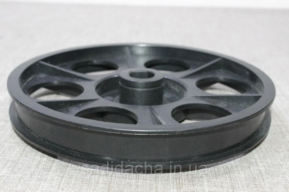 Шкив пластиковый для бетономешалки под срез. БМ125Е БМ140Е БМ160Е БМ180Е БМ200Е Гладкий пластмассовый шкив под ручейковый ремень. Оригинальна фабричная деталь. Подойдет к любой бетономешалки при соответствии размеров.Диаметр наружный - 170 мм.